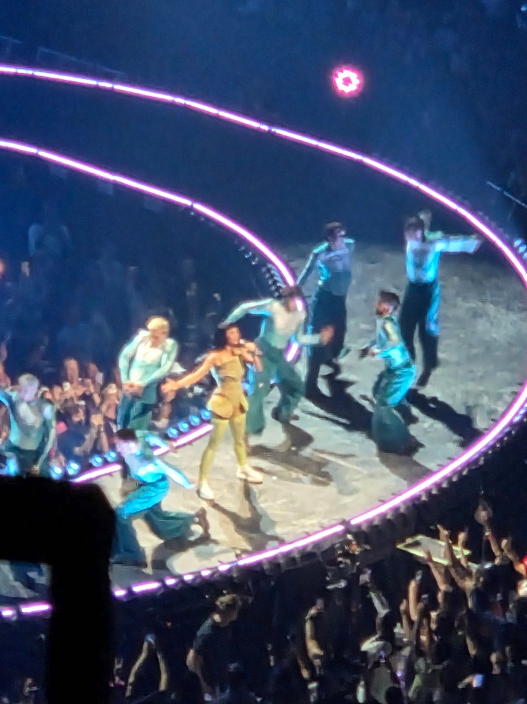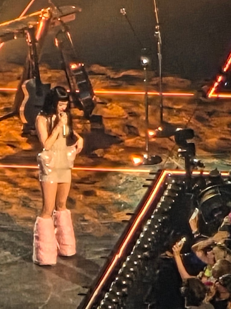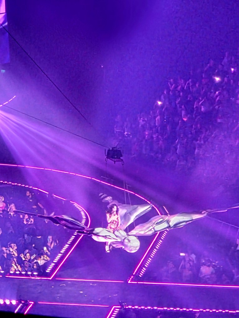 Shockingly she was being mocked at every turn over her participation in leaving planet Earth with other hard working women who decided to spend their money on that, viral videos framing her on this tour as lazy or anticlimactic at best compared to Taylor, Billie, or Beyonce’, and her very Public break up with her daughter Daisy’s baby daddy, Orlando Bloom. Yet, here she was and here we all were in Denver to see her after the show had been punted to July 10 from May 15. My expectations were low. In fact, I am no die hard fan of any of these very lucky peasants because I have been too busy raising children of my own for the last couple decades and trying to survive. I am a fraud. I don’t know album names or fan girl out too deeply like those around me. I hide and enjoy myself with my shallow knowledge of songs with appreciation and no regrets.